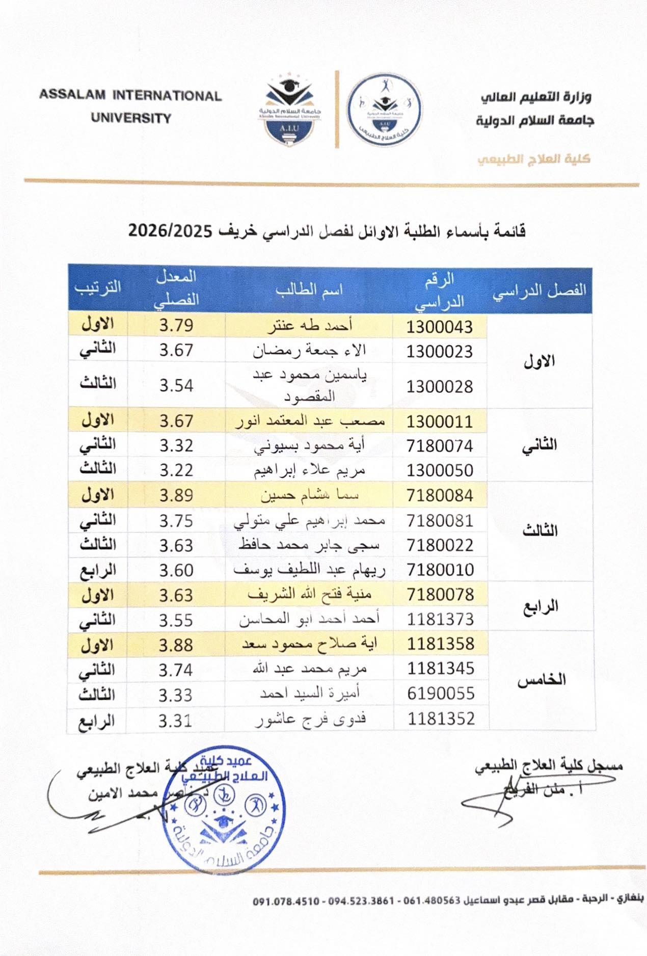 إن هذا التفوق هو ثمرة الإصرار والعمل الجاد، وخطوة مشرّفة في مسيرتكم العلمية والمهنية لخدمة المجتمع في مجال العلاج الطبيعي.